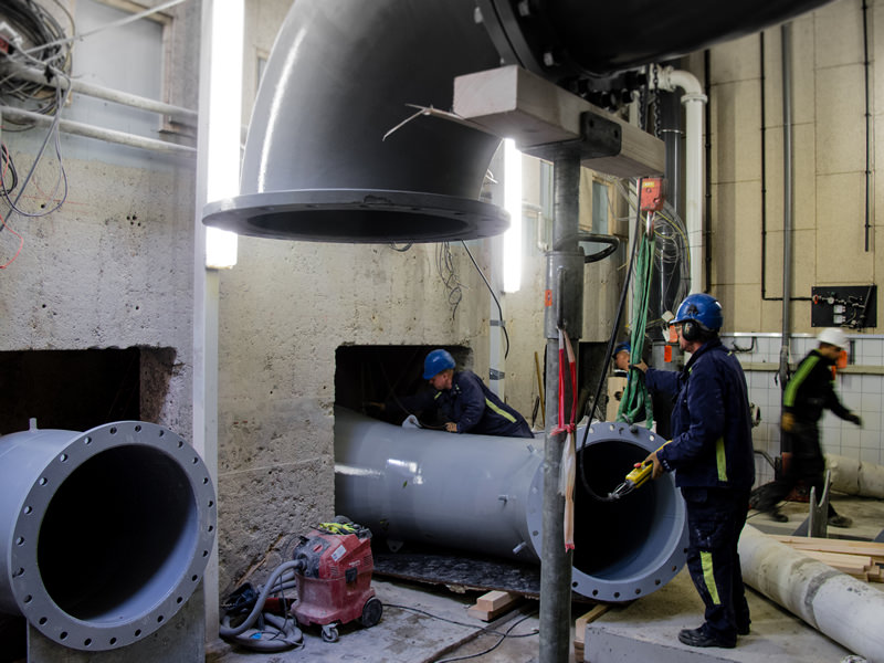 De werkzaamheden aan het rioolgemaal in Delft bestonden uit de engineering, fabricage en montage van drie nieuwe pompen, inclusief het leidingwerk.