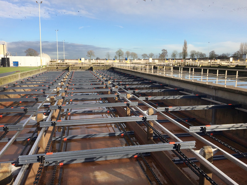 Op de rioolwaterzuivering Nieuwveer in Breda is door opdrachtgever als vervanging van de bestaande stalen ruimers gekozen voor kunststof kettingruimers van Boeg. In totaal zijn er zes (6) tussenbezinktanks, welke elk voorzien zijn van drie (3) langsruimers van 4,8 x 60m